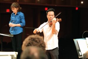 Highly in demand as a guest concertmaster, he has performed with the Pittsburgh, Milwaukee, Houston, and Sydney symphonies and the Macao Orchestra. Previously concertmaster of the Metropolitan Opera Orchestra, Mr. Chooi’s solos can be heard through The Met: Live in HD broadcasts in productions of Verdi’s La traviata, Janacek’s Jenufa, and the Grammy-nominated recording of Richard Strauss’ Der Rosenkavalier released on the Decca Label. He has made critically acclaimed debuts at Carnegie Hall’s Stern Auditorium as soloist with the Buffalo Philharmonic Orchestra and at Lincoln Center’s Rose Hall with Orchestra NOW, and has been featured soloist with the Montreal Symphony Orchestra, Santa Fe Symphony, Vancouver Symphony, Hong Kong Philharmonic, and other renowned orchestras.