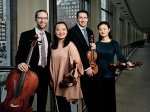 October 25: The 2024–25 Curtis Presents series kicks off with another “masterly nuanced performance” (Wall Street Journal) from the Dover Quartet, the Penelope P. Watkins Ensemble in Residence, featuring Joel Link (String Quartet ’14, Violin ’11), and Bryan Lee (String Quartet ’14, Violin ’11), violist Julianne Lee (Violin ’05), and Camden Shaw (String Quartet ’14, Cello ’11, ’10). This riveting program features Jessie Montgomery’s folk music-inspired Strum; Pura Fé’s Rattle Song, arranged by Jerod Impichchaachaaha’ Tate; a new, Curtis-led co-commissioned work for string quartet composed by Mr. Tate; and Antonin Dvořák’s String Quartet in F major, Op. 96 (“American”). Named one of the greatest string quartets of the last 100 years by BBC Music Magazine, the two-time GRAMMY-nominated ensemble is one of the world’s most in-demand chamber ensembles. The prize-winning quartet was formed at Curtis in 2008, and its name pays tribute to the composition Dover Beach by fellow Curtis alumnus Samuel Barber.- March 13: The internationally acclaimed Rosamunde String Quartet returns for an unforgettable night of chamber music. This remarkable ensemble features young stars from three of the world’s greatest orchestras:
