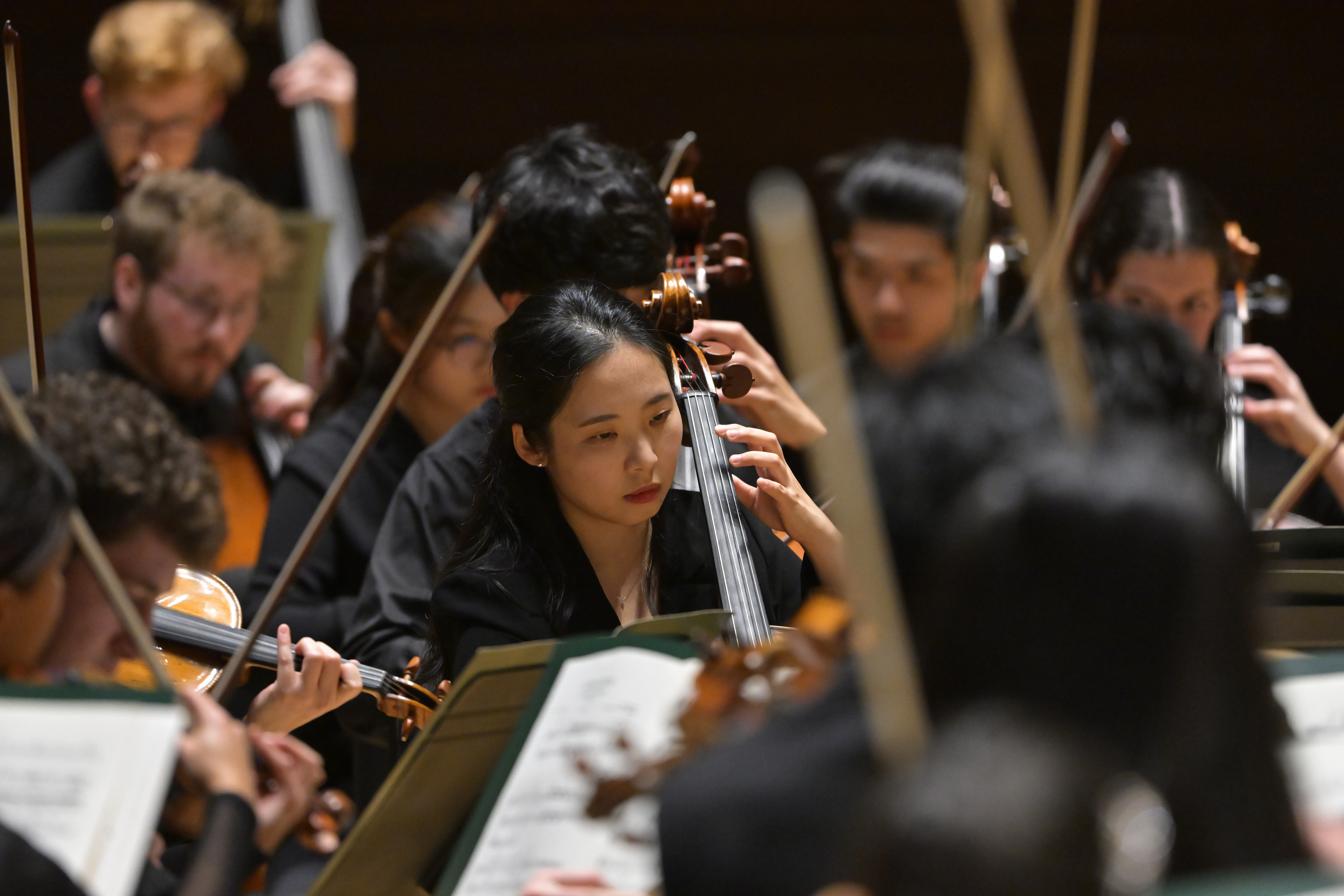 Photos of the Curtis Symphony Orchestra at Carnegie Hall, Stern Auditorium / Perelman Stage with conductor Osmo Vänskä and pianist Jonathan Biss by Pete Checchia. Photo of cellist Eunae Lin and the Curtis Symphony Orchestra at Verizon Hall, Kimmel Center by David DeBalko. Photo of composer Dai Wei by Sha Tao. Photo of Osmo Vänskä by Lisa-Marie Mazzucco. Photo of Yefim Bronfman by Dario Acosta. Photo of Janice Carissa courtesy of Opus 3 Artists.